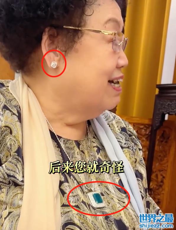 此次接受采访时,陈丽华出场打扮十分贵气,胸口上带着一块被碎钻包裹的大翡翠,手指上戴着一个红宝石戒指,手腕上还戴着一块钻石手表,整个人看起来富贵逼人。