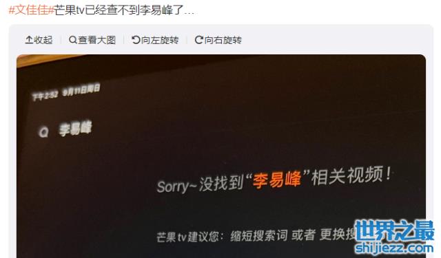 另外,芒果TV搜索李易峰相关内容,显示没有李易峰相关视频,不过后续有网友说又搜到了,但《青云志》演员列表里面已没有李易峰名字,《隐秘而伟大》《麻雀》《活色生香》其姓名也不在演员列表了 。