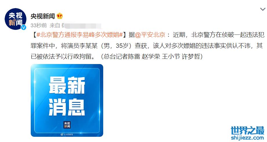 李易峰多次嫖娼被官方通报!本人对事实供认不讳,目前已被拘留 ...