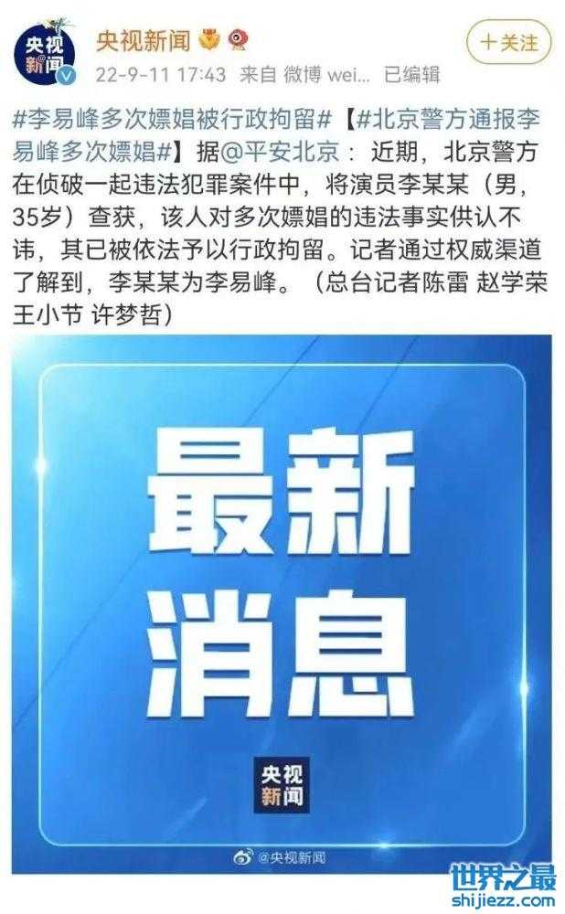 李易峰多次嫖娼!官方通报,他对违法事实供认不讳!