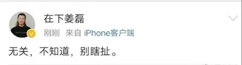 但随后姜磊又删除了该动态,否认发文与此有关。