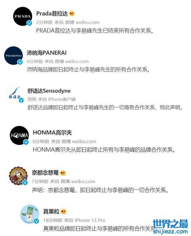 另外关于广告代言方面,真果粒为首的各大品牌代言同时发文“即日起终于与李易峰先生的一切商务合作关系。”
