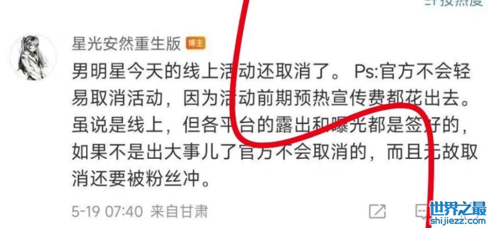 博主隔天又说,该男明星的活动取消了,而当时李易峰的活动也称因故取消。