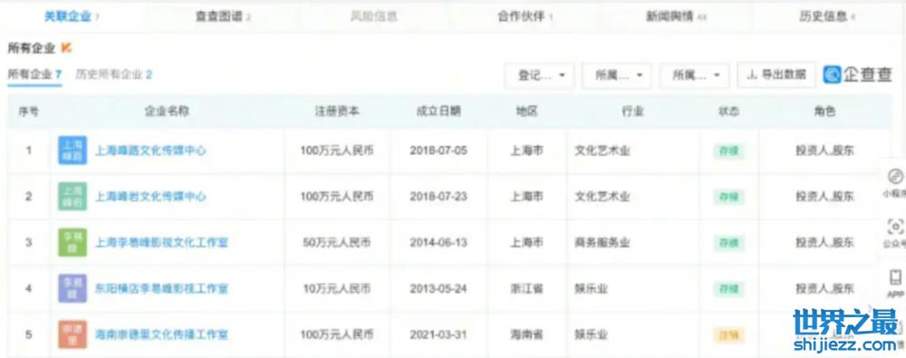 其中在3月15日,李易峰注销了厦门市千艺晟博文化传媒工作室;4月12日,李易峰将海南崇德里文化传播工作室和海南崇德里文化传媒合伙企业(有限合伙)同时注销。