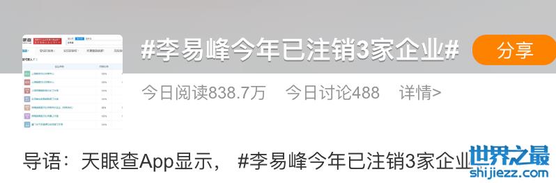 早在今年3月份和4月份,李易峰先后注销了自己的3家公司。