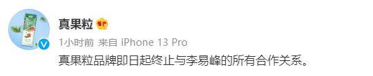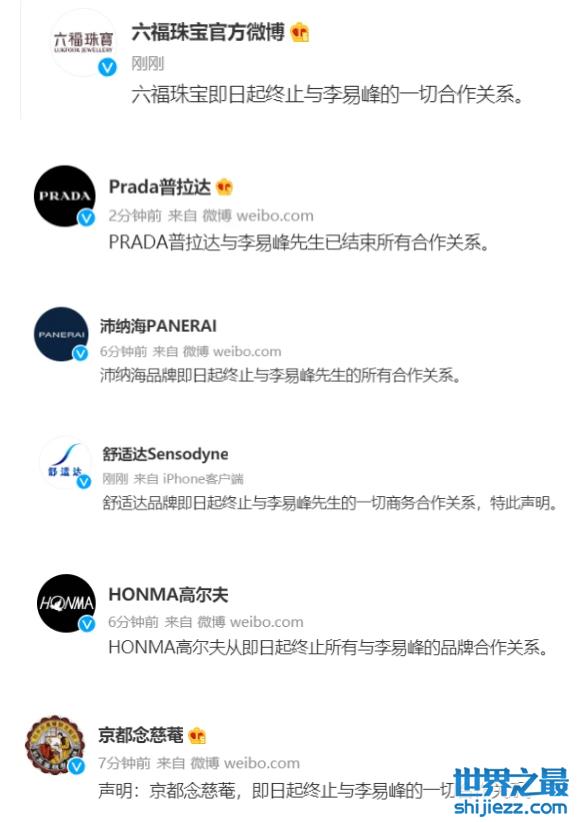 在确定李易峰的嫖娼事实之后,与其合作的13家品牌方先后宣布与其解约,各方火速解除合作的举动也说明李易峰的事业无疑就此结束。