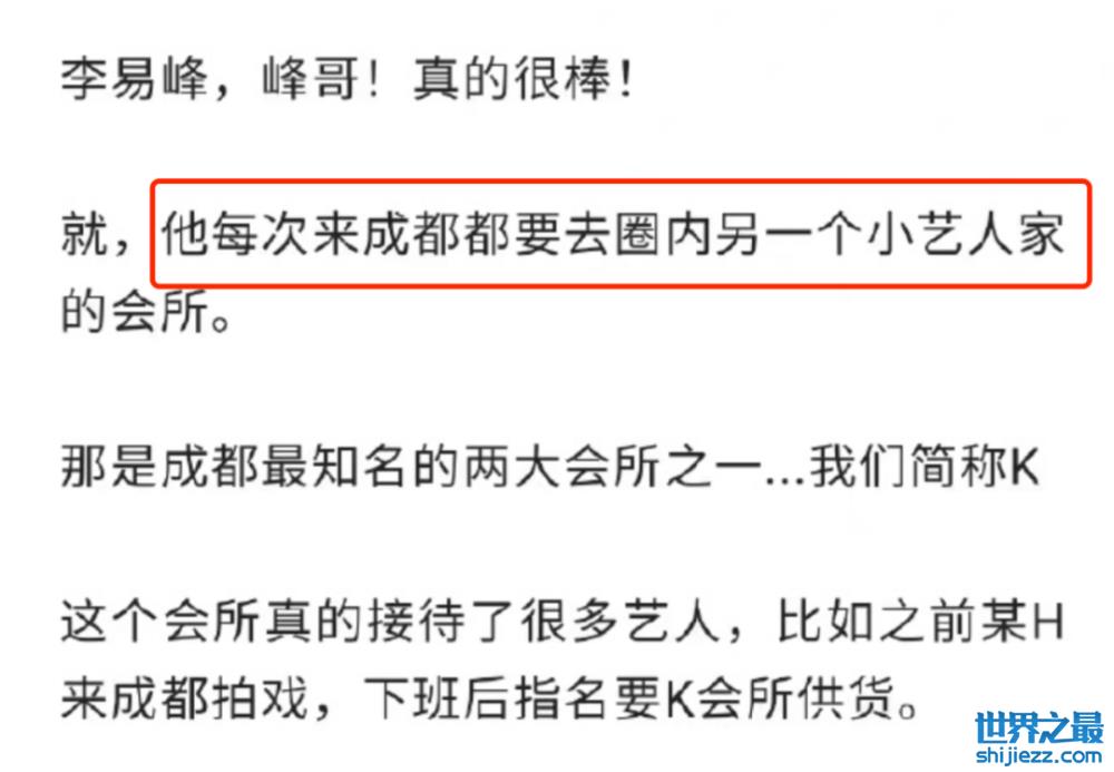 据他说,李易峰每次去成都,都会去一家名为K的会所,该会所是由圈内某选秀小生家开的。