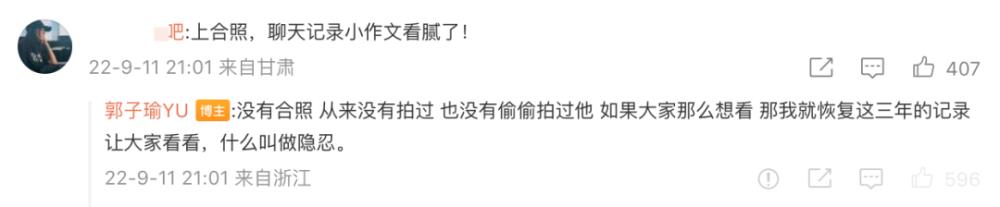 郭子瑜自曝跟李易峰在一起三年,网友希望她能发出合照,但她表示:从来没有过合照,自己也没有偷拍过李易峰。并表示,如果大家想看,她就恢复三年来的聊天记录。