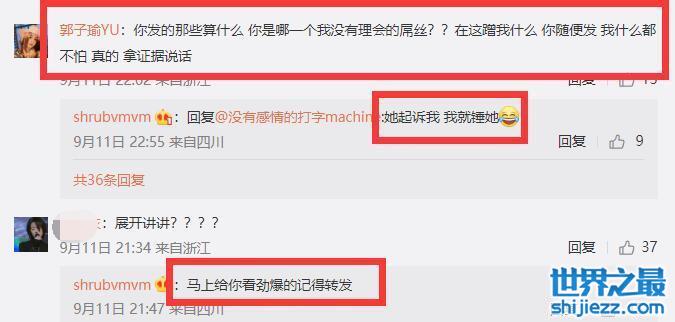 郭子瑜再次吐槽:“你发的那些算什么,你是哪一个我没有理会的屌丝,在这蹭我什么,你随便发,我审美都不怕,真的,拿证据说话”。