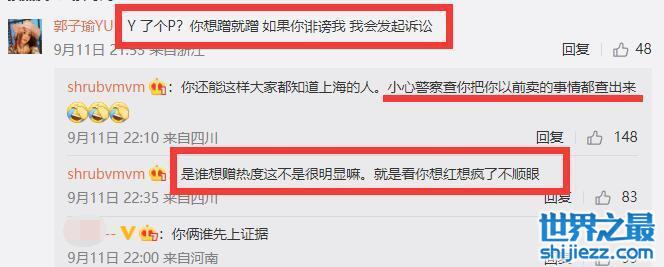 后来,郭子瑜本人去评论区回复:“Y了个P,你想蹭就蹭,如果你诽谤我,我会发起诉讼”,不过这位好友丝毫不畏惧,直接硬刚:“你还能这样大家都知道上海的人,小心JC调查你,把你以前卖的事情都查出来”。