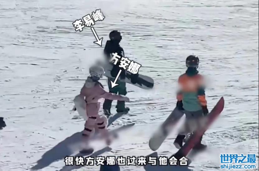 三人在滑雪场里玩得不亦乐乎,李易峰与方安娜也刻意保持着一段距离。