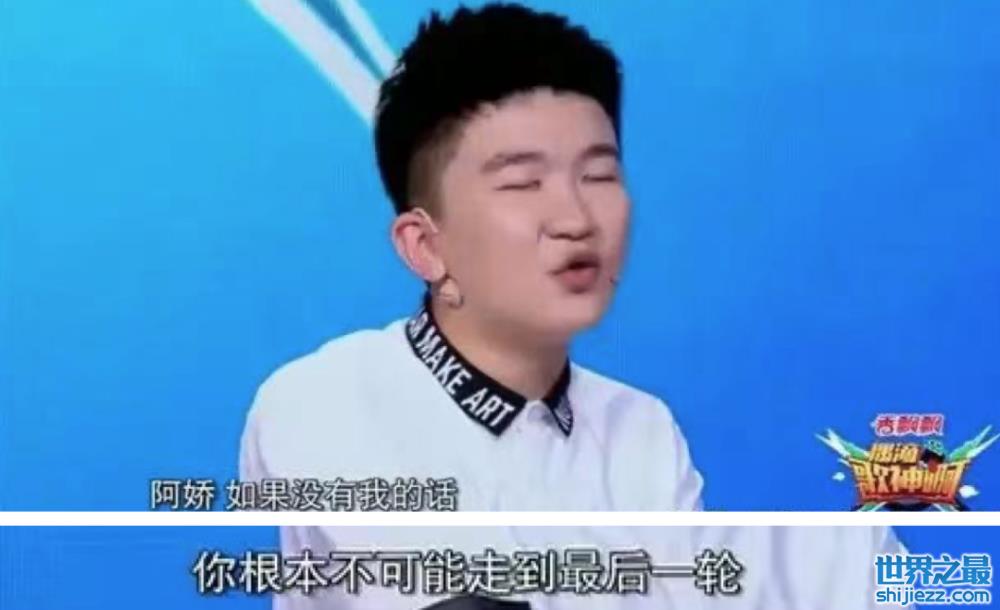 上节目和阿娇说:没有我,你根本不可能走到最后一轮。