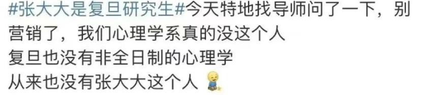 网友吃惊了一天一夜,没想到事情反转了,复旦学生表示心理学就没张大大这个人,复旦也从来没有非全的心理学…