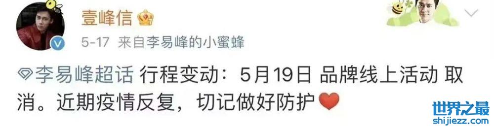 在粉丝忧心忡忡的时候,李易峰开了个直播,告诉大家是因为疫情才取消活动,给了粉丝们一颗定心丸,