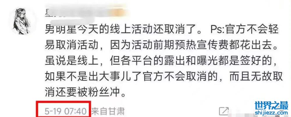 到了5月19号,该爆料博主又表示该男星当天的活动被取消,