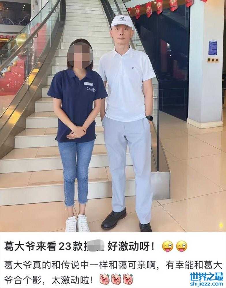 在爆料者文案中显示,葛优当天其实是来看车的,只不过刚好工作人员正是粉丝,所以葛优当天也非常耐心的在离开前和工作人员们合影留念。
