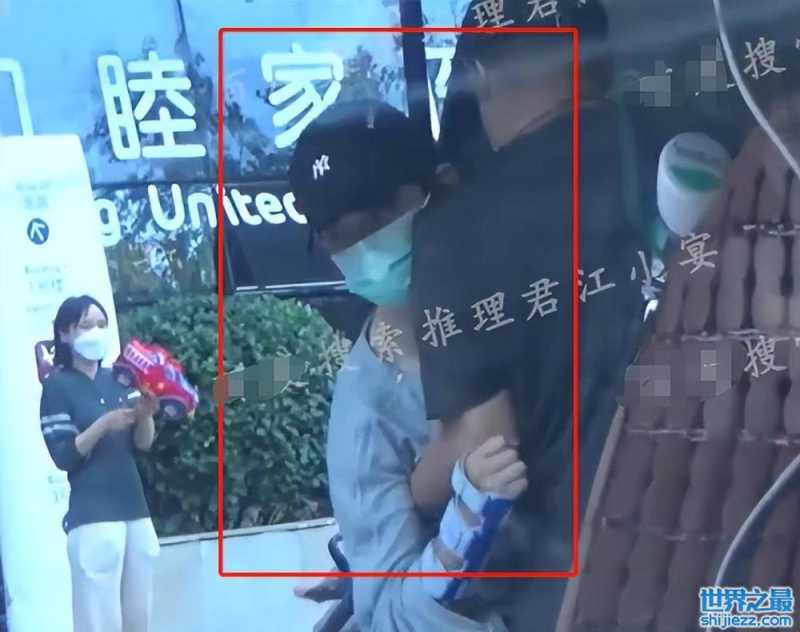 或许是因为行动实在不便,工作人员将轮椅推到车子后备厢旁。郭俊辰无法在自行上车,只能够伸手向工作人员“索抱”。