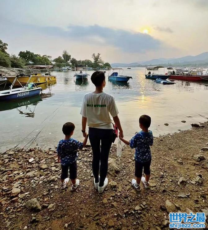 和孩子们在一起时,胡杏儿永远是最接地气的宝妈,穿着舒适便捷的运动服,头上还戴着一副墨镜,脸上没有一点化妆品的痕迹,一手牵着一个娃,与平时镜头中的女神形象截然不同。