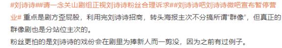 剧方的态度与操作无疑让刘诗诗的粉丝大为寒心,为了讨回应有的说法与公道,当下刘诗诗吧、刘诗诗微吧、诗舞翩翩都先后发文暂时营业,随后刘诗诗的官方粉丝团也宣布停业,刘诗诗的几个功能账号全部罢工。