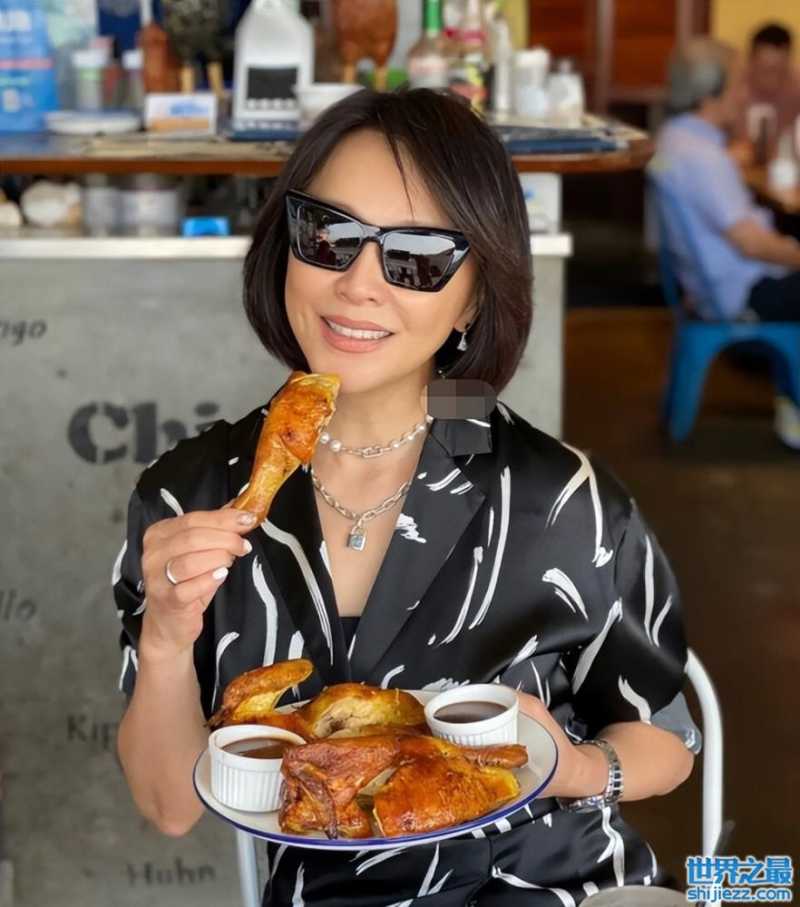 近日,刘嘉玲在社交平台晒出一组在某餐厅就餐的照片,引发网友热议。照片中她身穿V领长裙,戴黑色猫眼斜角墨镜,又美又飒。刘嘉玲左手端起烤鸡,右手拿起一只鸡腿面对镜头,笑得大方自然,引发网友热议。