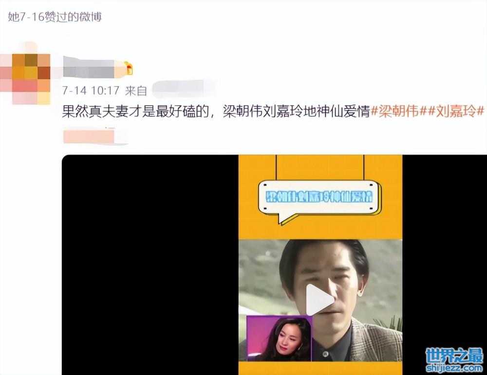 刘嘉玲除了个人生活丰富多彩,夫妻关系也经营得很不错,与老公梁朝伟多年感情一直很好。七月份她还点赞了媒体发布的《刘嘉玲梁朝伟神仙爱情》视频,很是可爱。