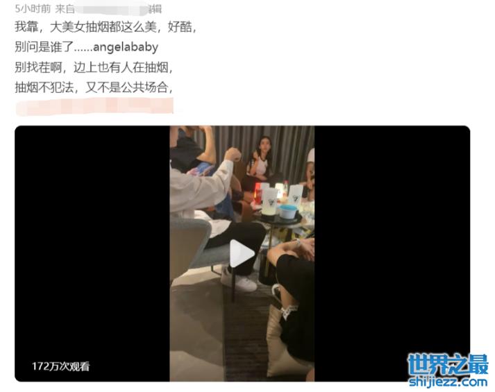 近日,有网友在社交平台发布了一段自己聚会的视频。值得关注的是,视频中能看见女星Angelababy正与朋友们吞云吐雾,引发网友热议。