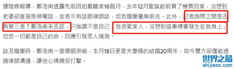 媒体在现场采访郑浩南询问是不是婚姻当中出现了“第三者”的缘故,郑浩南并没直接否认,疑似暗示妻子已经婚内出轨,但具体情况如何,大家并未得到当事人的正面回应。