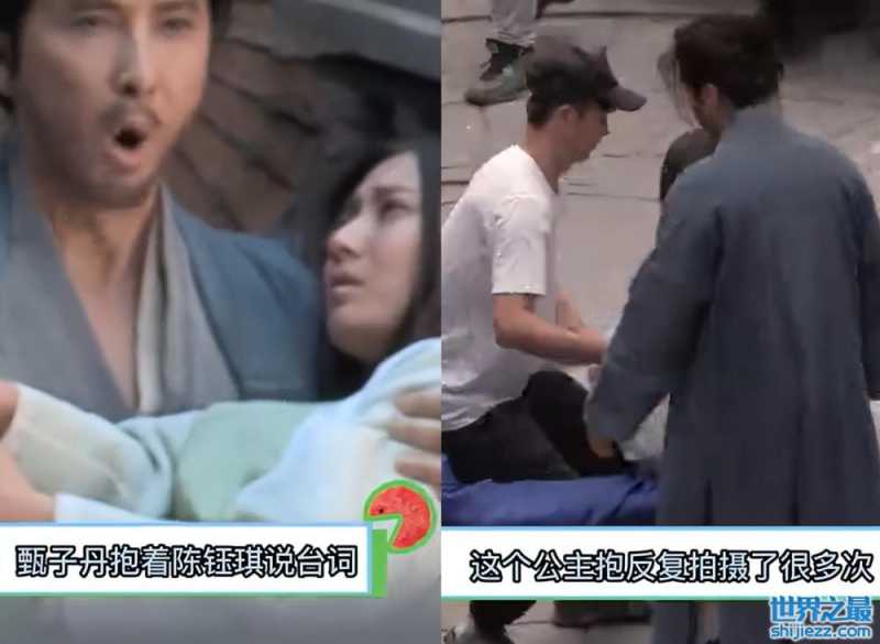 只是但镜头一拉远的时候,大家却发现了甄子丹抱着陈钰琪的画面,其实并不是甄子丹全程公主抱,陈钰琪其实一直躺在了担架上面,由两个穿着蓝色衣服的工作人员扛着进行的拍摄。