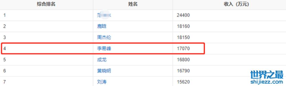 到了2017年,他已经排到第4位,年收入达到惊人的1.7亿。
