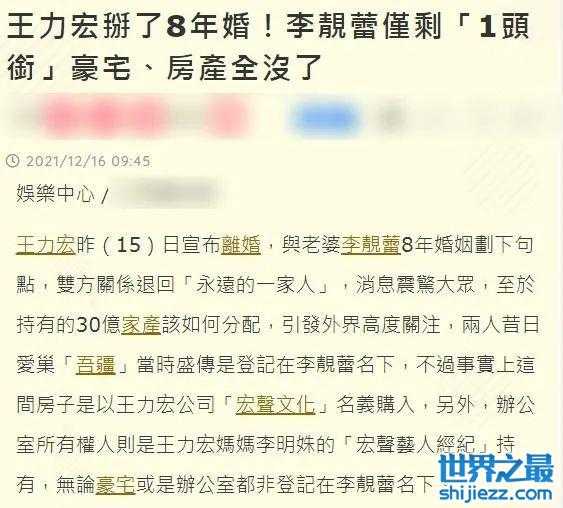 在两人离婚时,王力宏多年积累的资产也被曝光,一共是近7亿人民币左右,而一度据传,这7亿财产全部都是在王力宏以及王力宏母亲名下,前妻李靓蕾可能“净身出户”。