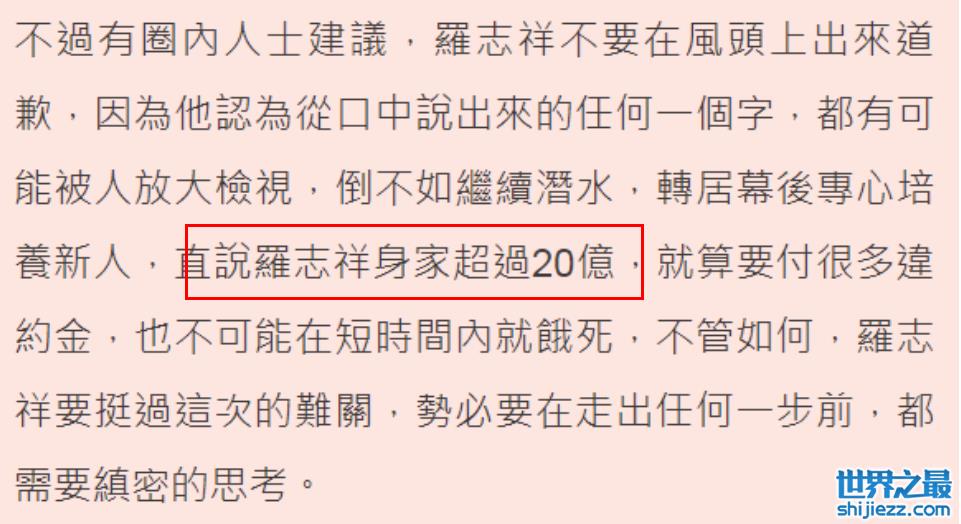 罗志祥虽然在娱乐圈的事业搁置了2年多,但他出道多年积累的身价也很丰厚。
