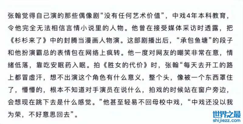离谱的是,多年后张翰还在节目中公开谈到这件事,评价为“这是一件很好的事情,在20几岁的时候遇到这样的错误”。
