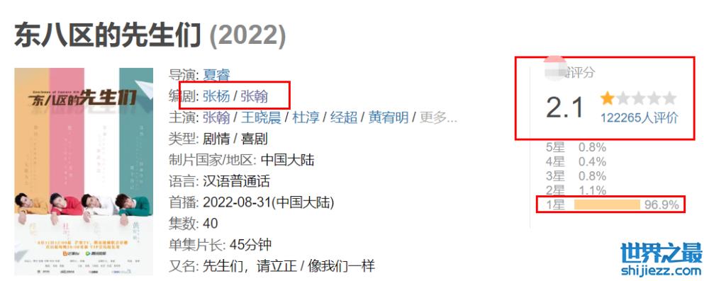一个明星除了可以靠作品来维持热度,还能靠“争议”。这次《东八区的先生们》引起的争议,让这部只有2.1分的“烂剧”在某平台上引起了超过12万人的关注和评价,不过接近97%的网友给出了一星的差评。