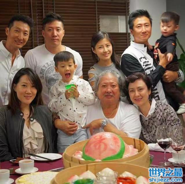 再说说洪金宝的豪宅,有网友曝出洪金宝一家9口人的合照,合照中,洪金宝一家人紧紧依偎在一起,老婆儿子儿媳孙子陪在身边,洪金宝笑得很开心。