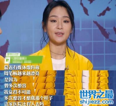 周笔畅说自己本来是照着杨幂那样整的,结果最后出来像刘诗诗、董洁、杨紫,也是非常幽默地自黑了。