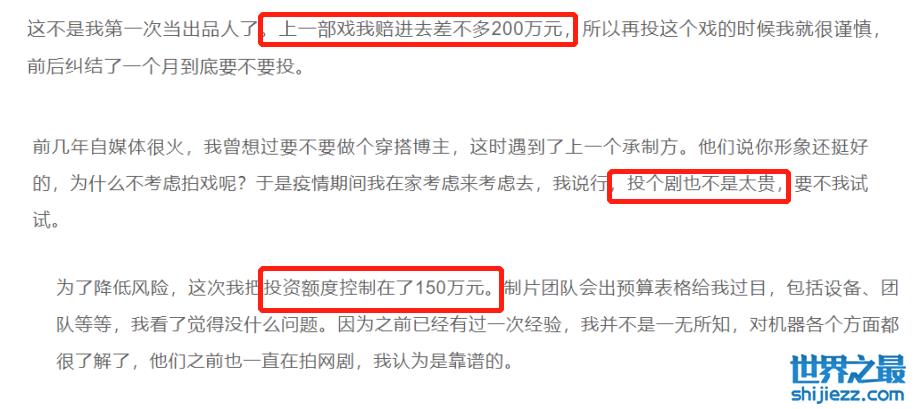 而且,刘芊螢也不是大家想象中毫无经验的圈外人,在投资这部作品之前,她已经有过了担当出品方的经验,虽然亏了两百万,但她只花了一个月时间就消化了第一次的失败,此次的投资成本也控制在150万左右,对于她而言并不算贵。