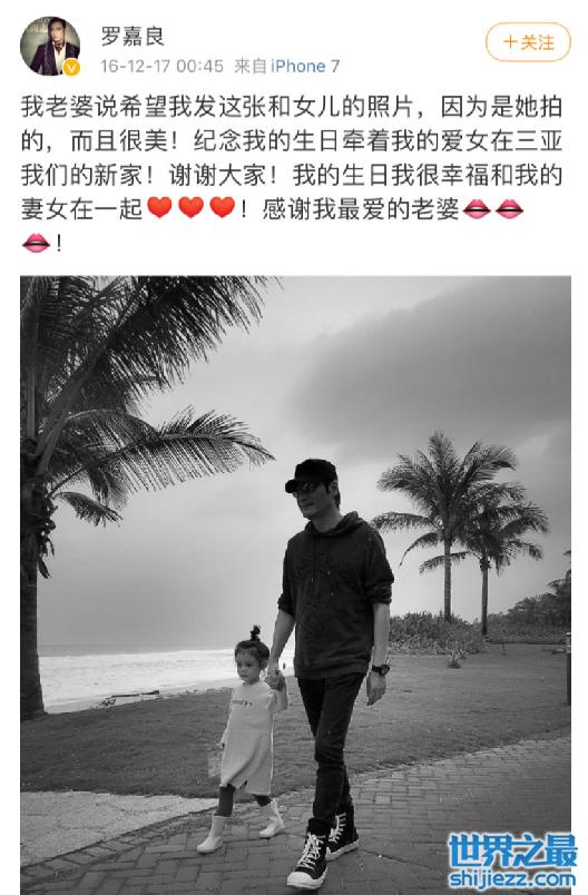 虽然罗嘉良是香港人,但两人结婚后选择居住在了北京。罗嘉良本人就一个十足的“爱妻炫女”户,结婚七年的时候,罗嘉良发当着所有人的面发文称“感谢我最爱的老婆”,话语里满满的幸福感,如今两人结婚已经13年了,感情还是一如既往地好。