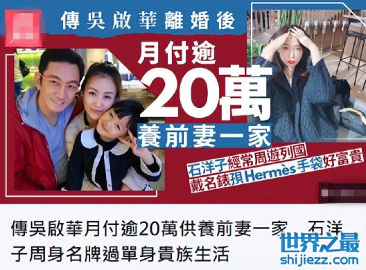 如今吴启华和前妻石洋子已经离婚8年,两人目前都定居在深圳。据爆料,吴启华在离婚后每个月要给前妻人民币6万元做赡养费,除此之外,因为石洋子的母亲在带两人的女儿,所以要另外再给20万给前岳母,供女儿读书。