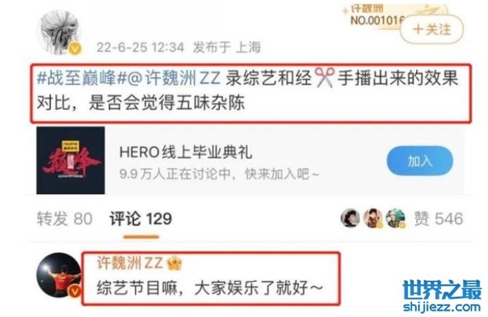 而节目播出后,不少网友对许魏洲的做法议论纷纷,他又回应称“综艺节目嘛,大家娱乐了就好”。