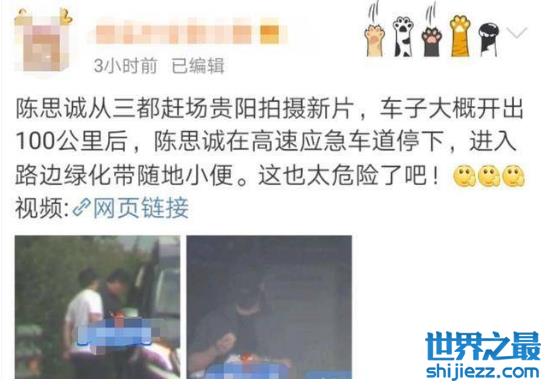 之前有网友爆料,陈思诚一行人开车赶往拍戏现场,当车子大约开出100公里后,陈思诚的车就在应急车道停下。