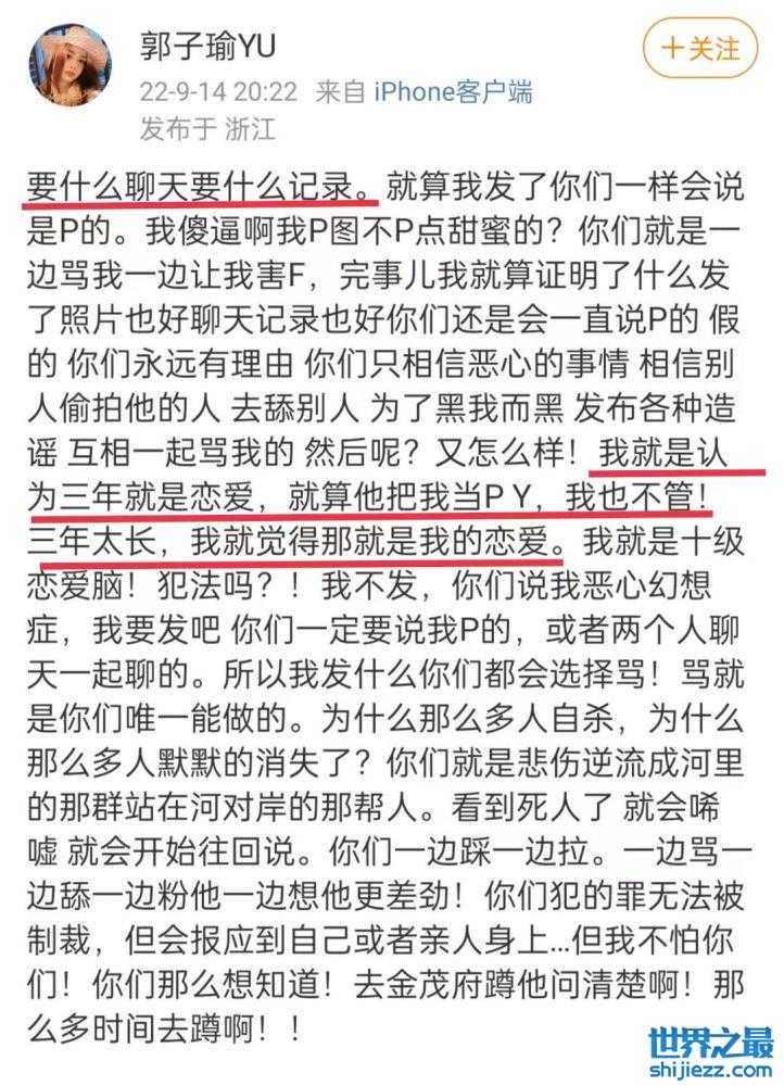 当时,郭子瑜发文,受到了大量网友的质疑,怀疑其蹭热度,让她有本事拿出实锤。后来,郭子瑜发长文回应,“要什么聊天要什么记录”,显然对网友的话不屑一顾。可是,如今又晒出聊天截图,不知道这算不算自己打自己的脸呢?