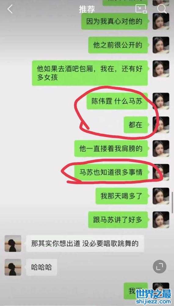除了杨幂,陈伟霆与马苏也被牵扯进来。从聊天记录来看,她曾与李易峰一起去酒吧,她还喝多了,跟马苏讲了很多。陈伟霆,马苏都知道此事。