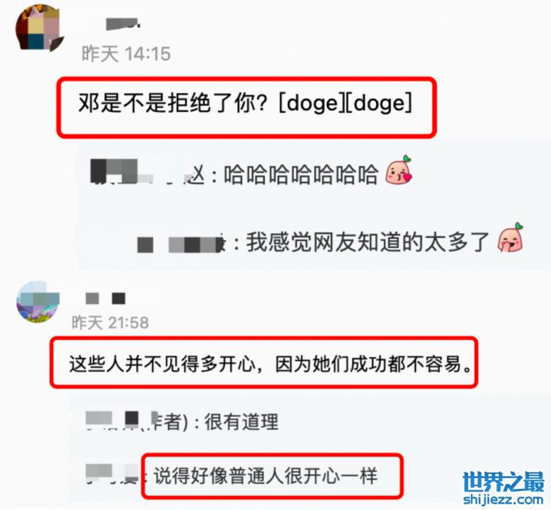 对于博主晒出来的偶遇图,有网友表示是不是邓文迪拒绝了与博主的合影请求,所以博主只有与梅耶马斯克的合照,很多人也纷纷附和“你知道得太多。”,还有人觉得有钱人或许活得并不如表面这么开心,因为她们的成功都不容易。