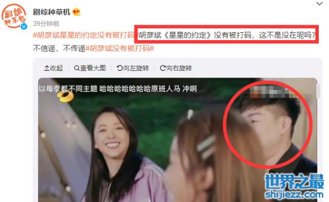 这位网友的发文引起了不少网友的关注,与此同时,有网友爆料说,综艺节目《星星的约定》,胡彦斌的镜头被打码处理了,原本很多人都以为这位网友是在恶意造谣,但爆料的网友晒出胡彦斌的打码镜头。