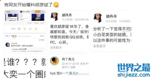 前几日,在李易峰塌房后,有网友顺道扒出了李易峰与网红湾湾苏梅岛事件,而湾湾与圈内不少艺人都是旧相识,其中就有此次被爆料的胡彦斌,据悉,胡彦斌不但与湾湾是互关好友,还曾亲自评论过女方的动态。