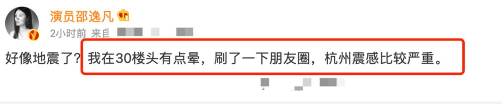 值得一提的是,此次台湾省地震似乎有余震传到内地,目前尚不明确原因。演员邵逸夫发动态表示自己在上海居住,但在30楼感觉到了一点余震,头有点晕,还表示朋友圈在杭州的好友震感相对严重。