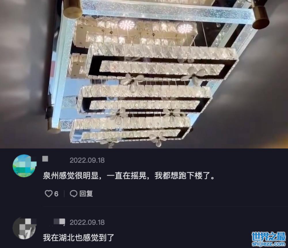 此外,在上海定居的演员戴娇倩也晒出了一段视频,称自家在家躺着感觉地面有点晃动,抬头发现自家客厅水晶灯一直在摇晃不停,而且壁灯也一直在反复跳转,她对余震表示疑惑。身在湖北、泉州的网友也纷纷表示感受到余震。