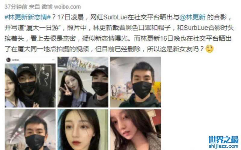 林更新参演过不少出圈电视剧,因外表高大帅气,也吸引了不少粉丝。除了作品之外,他的感情生活也一直备受大家关注,前段时间有位叫SurbLue的网红在社交平台上发布和林更新的合影,疑似林更新新女友曝光,引起网友热议,对此林更新方倒是没有回应。