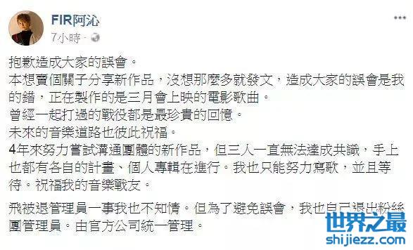 队长陈建宁回应说,是阿沁自己不想和唱片公司合作,要走单飞的路子,那就彼此尊重。阿沁也发文称,飞儿被退管理员他不知情,为了避免误会,他自己也退出管理员。