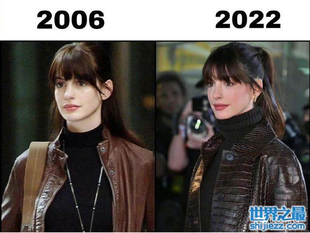 参加MK的大秀,她直接把自己打扮成了16年前《穿Prada的女魔头》里角色的同款造型出镜,和当年的状态对比几乎看不出区别。